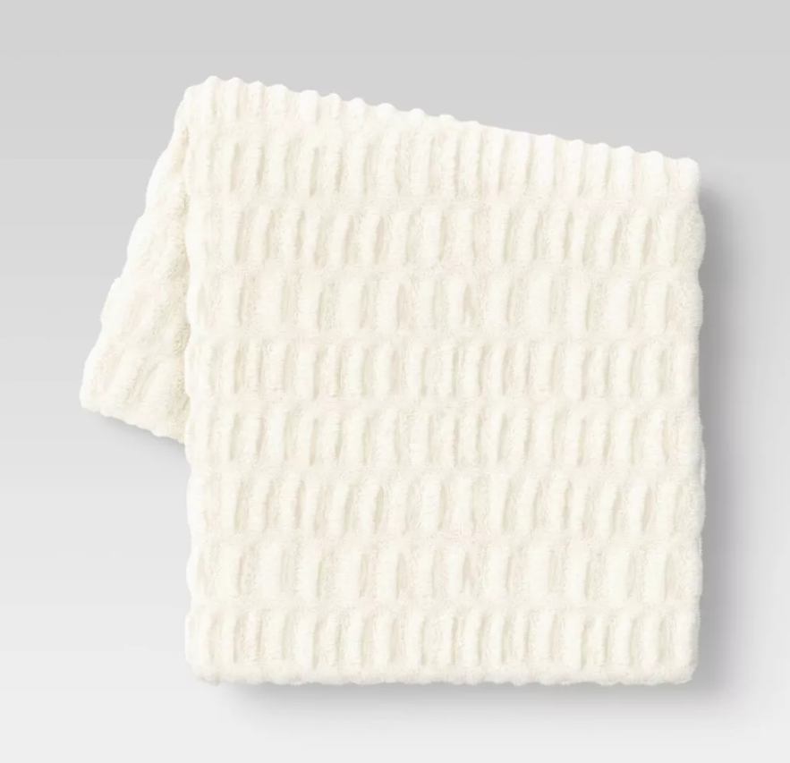 Add a fluffy Threshold Throw Blanket from Target as your base - it’s the anchor of the basket, and it sets the cozy tone right away.